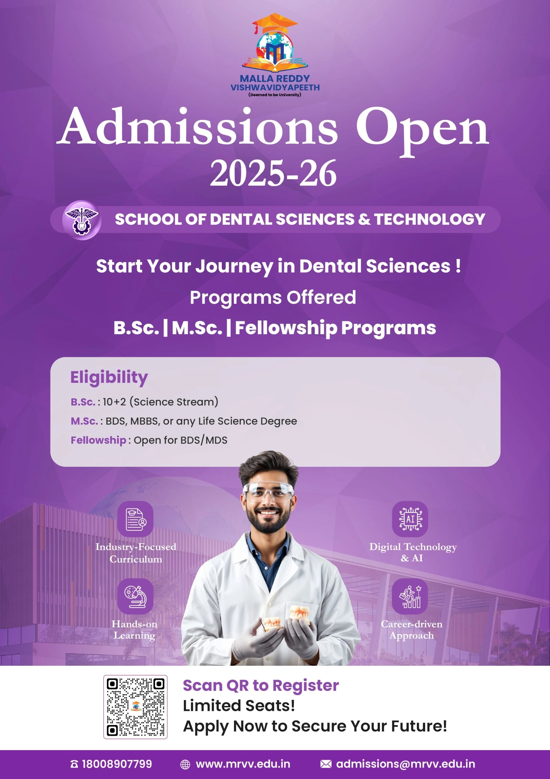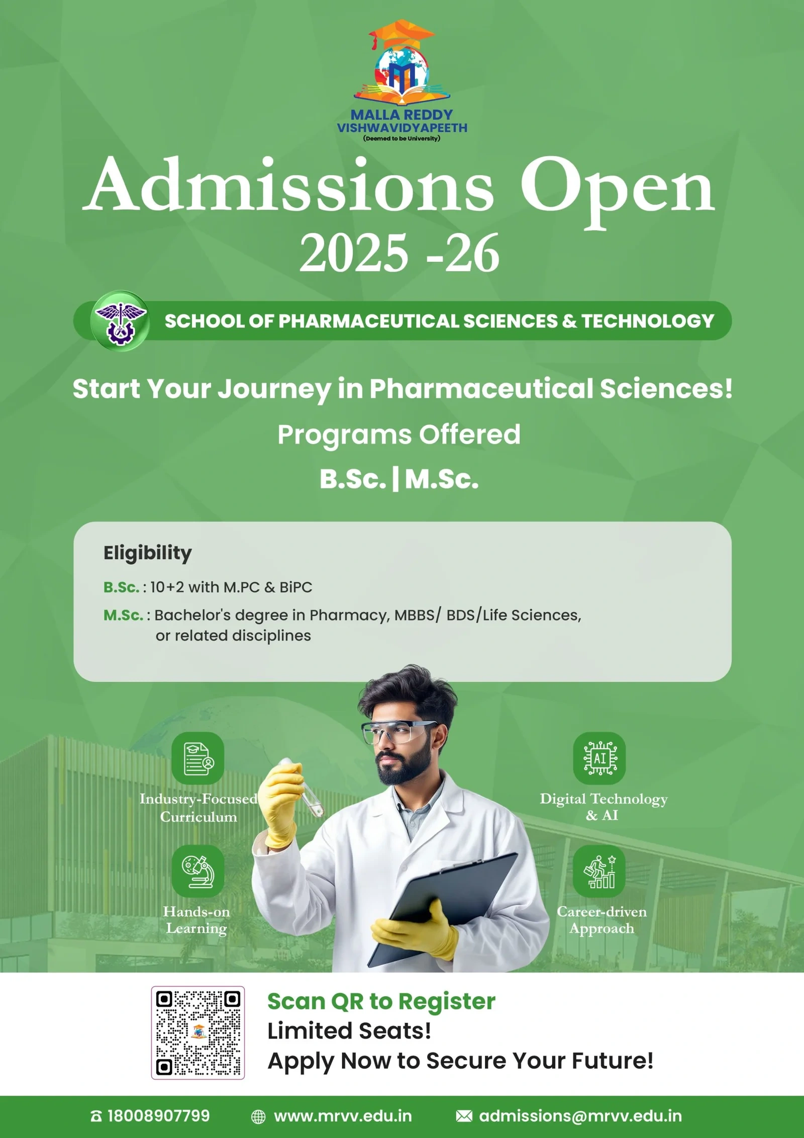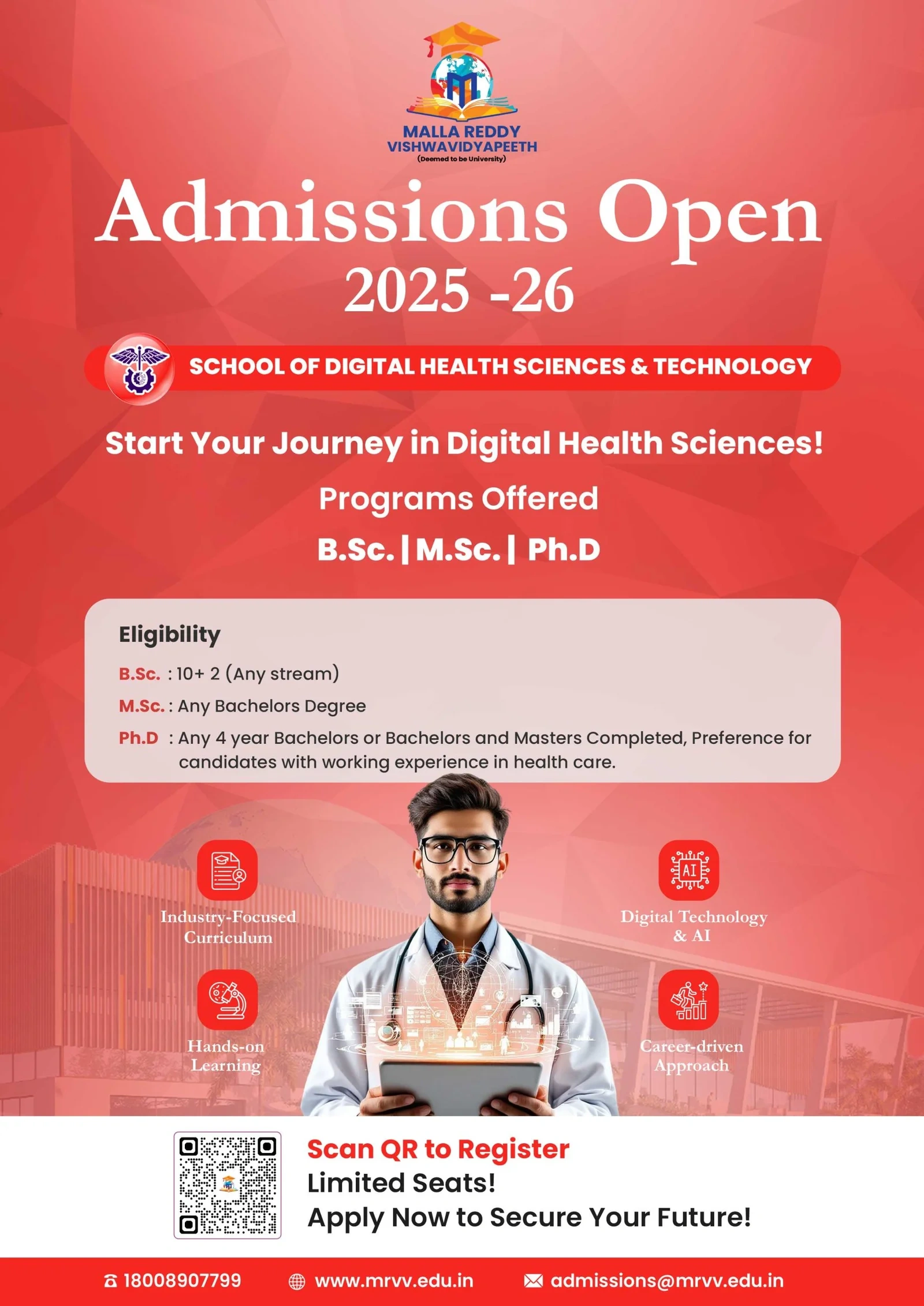 Malla Reddy Vishwavidyapeeth (MRV) presents new era distinct courses under exclusive “Schools of Eminence” delivering Inter-disciplinary Programs with Innovative courses, Unique and Flexible Curriculum with Multiple Entry and Multiple Exit (MEME) option including Choice Based Credit System (CBCS) and Academic Bank of Credits (ABC), Experiential learning, Skill Development with Vocational Training and Value Based Education, Industrial Partnerships and Global Collaborations leading to Holistic Development of the Individual.