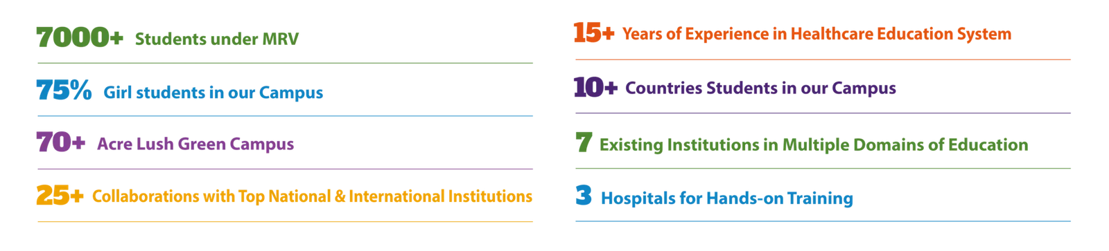 Encompassing a sprawling 75-acre campus, MRV boasts state-of-the-art facilities within academic, administrative, and amenity blocks. The cosmopolitan ambiance attracts a diverse student population from across the globe, fostering an environment conducive to learning. This atmosphere provides access to experienced teaching faculty with international exposure, nurturing students’ creative abilities and encouraging new innovations through knowledge partnerships. Our curriculum includes cutting-edge technologies and innovative coursework, preparing students to navigate the dynamic developments in the contemporary world.