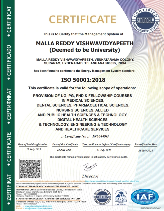 At Malla Reddy Vishwavidyapeeth (Deemed to be University), we believe that quality is not a destination, but a continuous journey of excellence. As the IQAC Coordinator and Chief Accreditation Officer, I take immense pride in spearheading initiatives that foster a culture of quality, innovation, and accountability across all academic and administrative domains.
