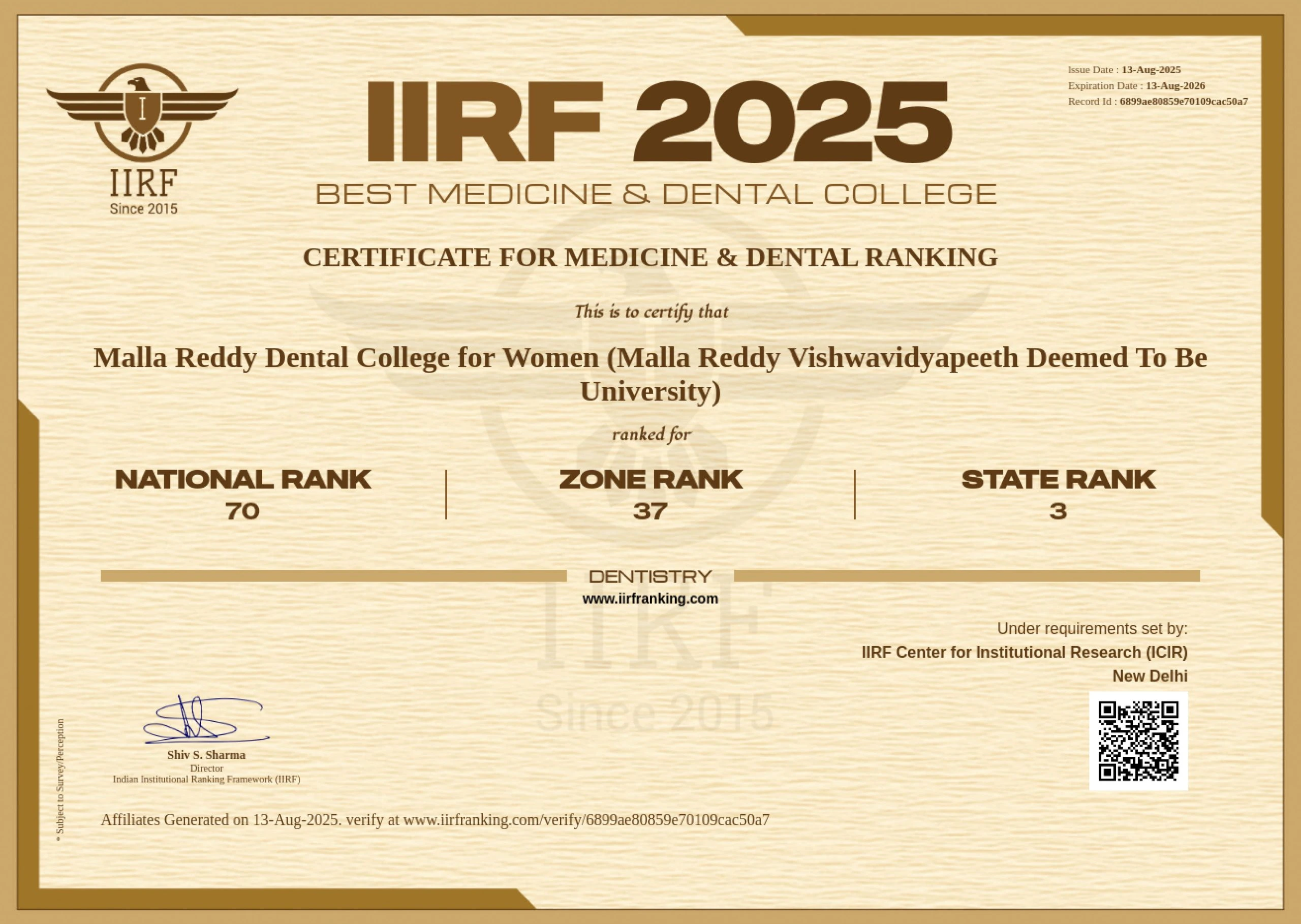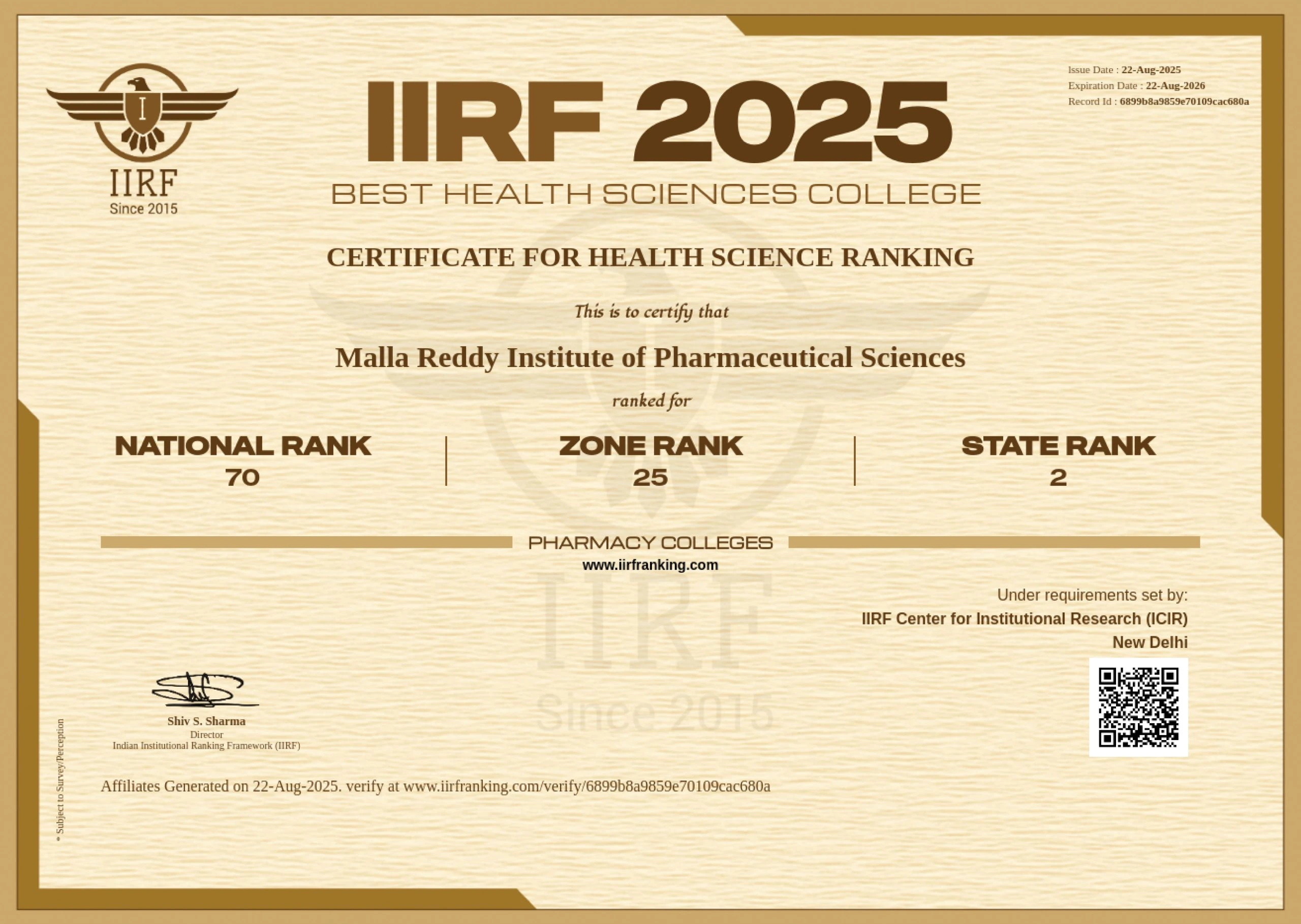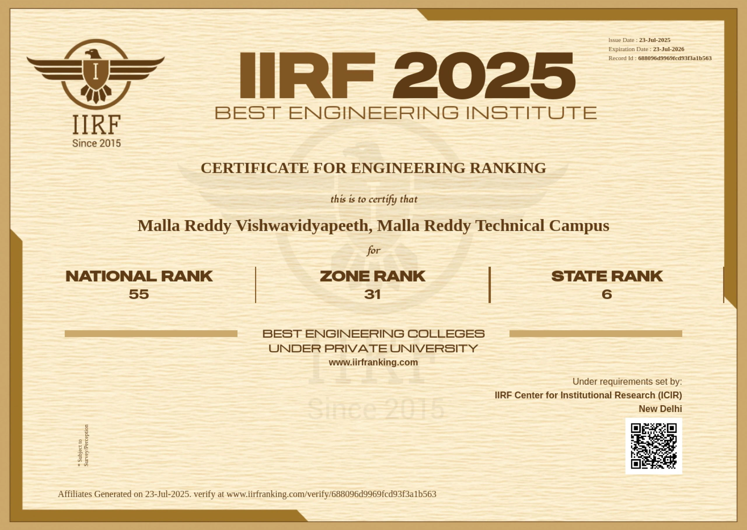 | 19-01-2026 | IIRF University and Domain- Specific Rankings | View |